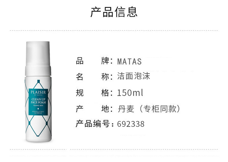 Matas洁面泡沫 沫泡沫绵密深入清洁水润不紧绷 150毫升